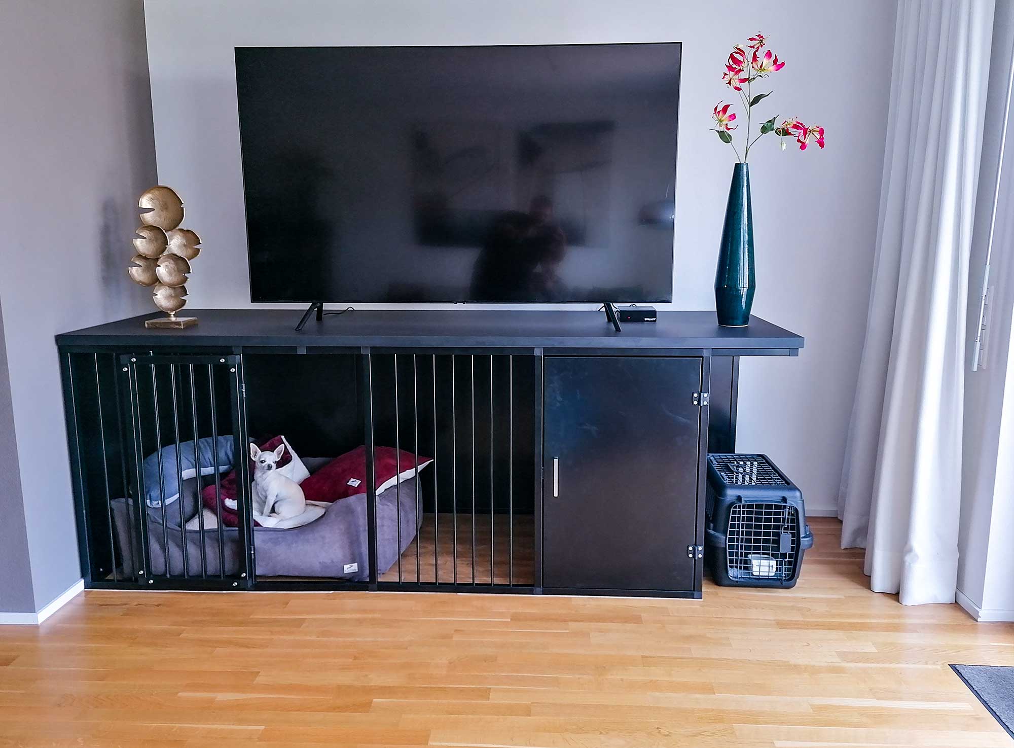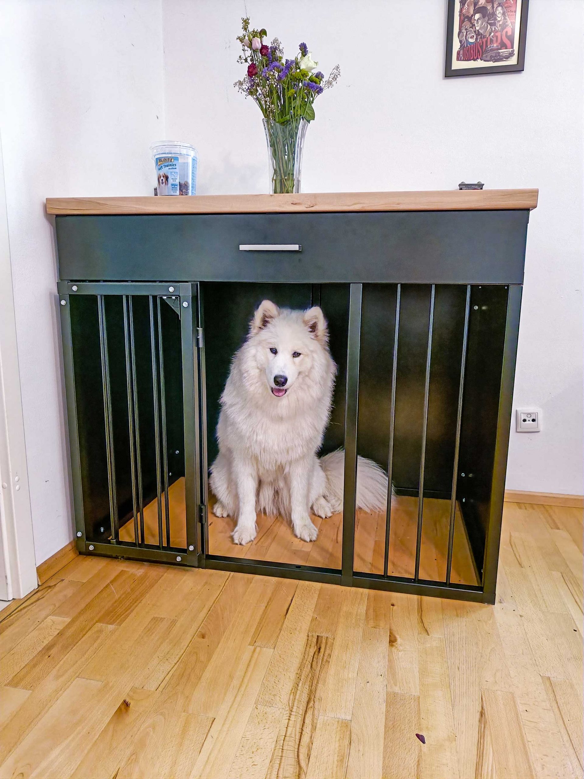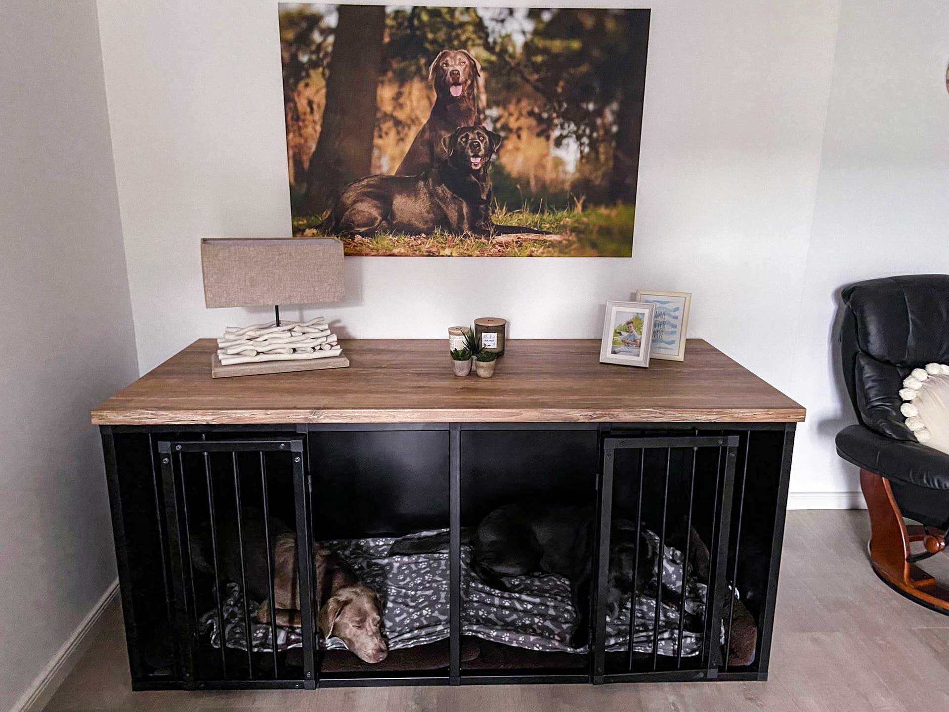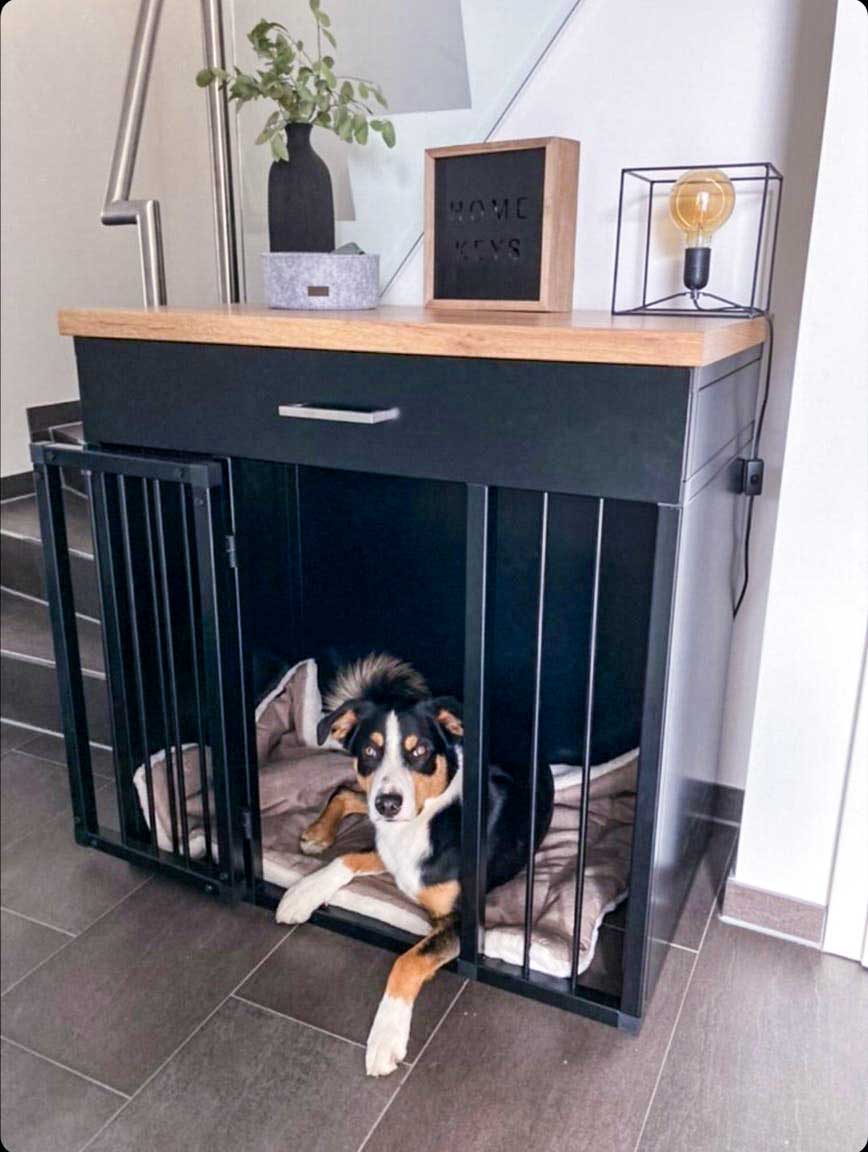 Eine auf Ihren Wohnraum abgestimmte Hundebox als Rückzugsort und Ruheraum für Ihren Vierbeiner.
