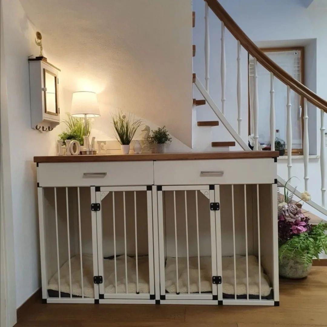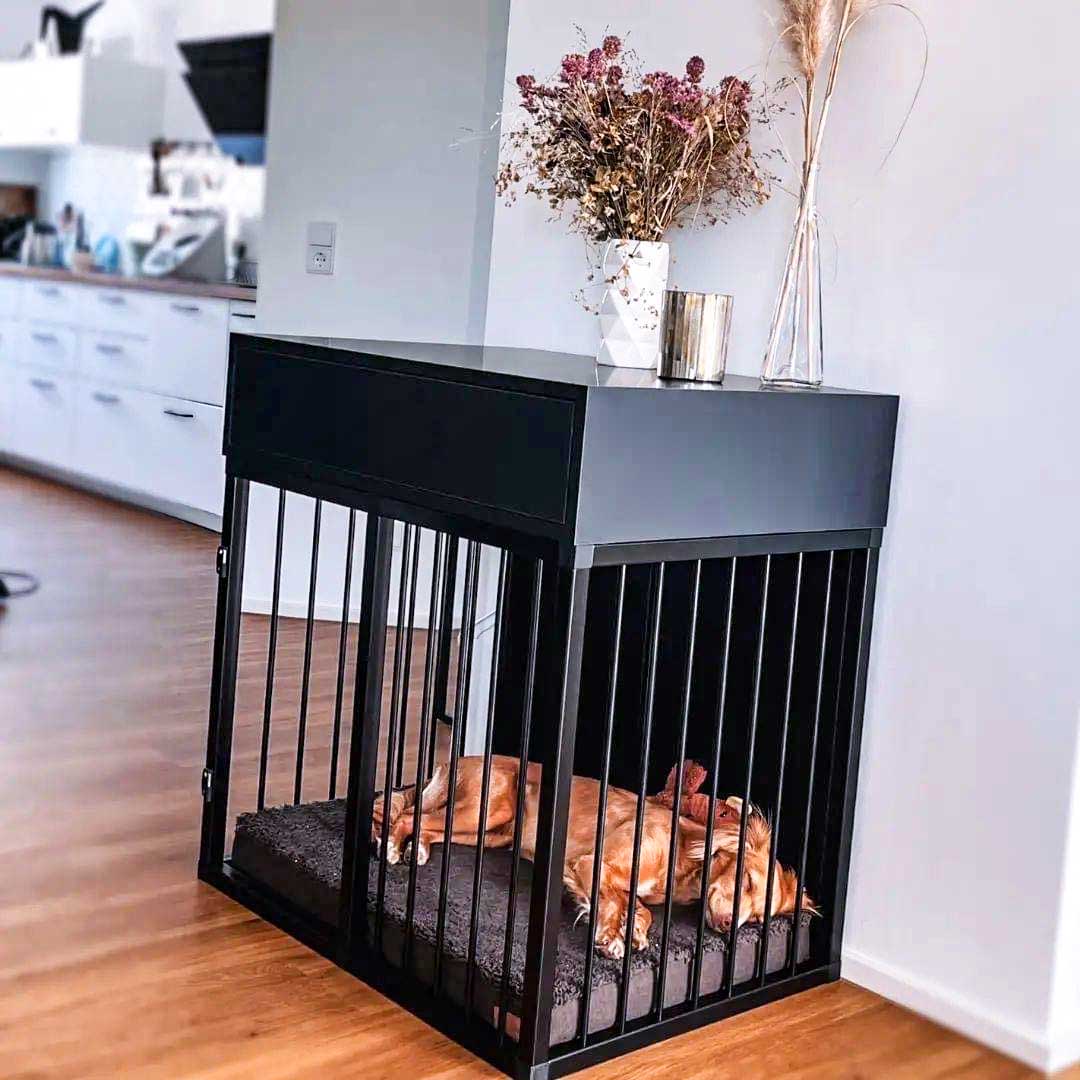 Eine Hundebox ist für viele Hundehalter eine praktische Vorrichtung, um Ihren vierbeinigen Liebling einen ganz persönlichen Rückzugsort und Ruheplatz zu schaffen. Binden Sie Ihren Hundekennel nahtlos in Ihren Wohnraum ein. In Optik und Funktionalität sind Ihnen dabei keine Grenzen gesetzt.