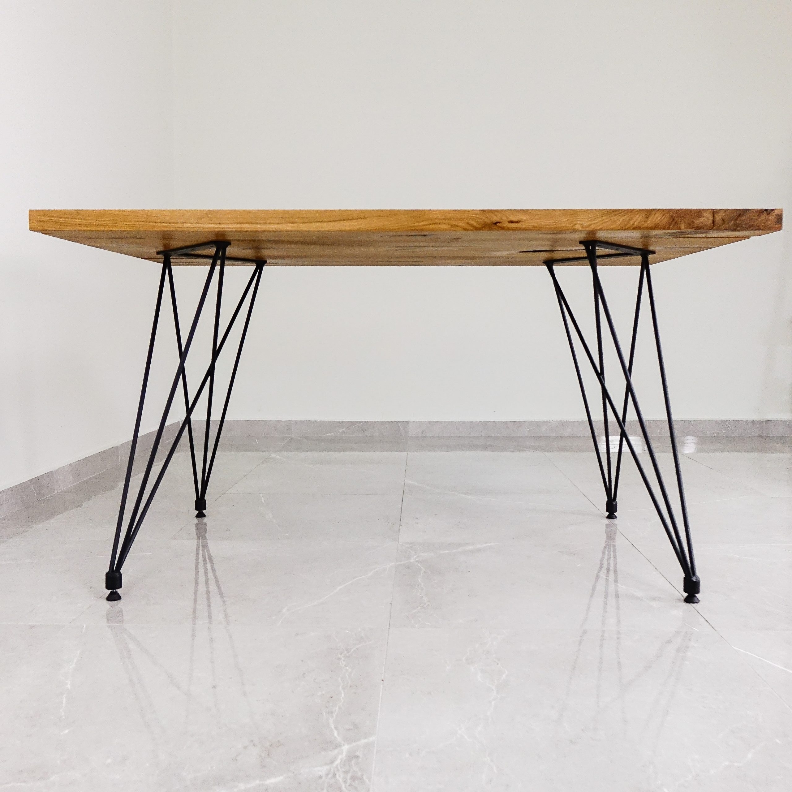 Ihre gewünschte Holzart verbinden Sie ganz einfach mit einem Stahl-Tischgestell nach Maß.